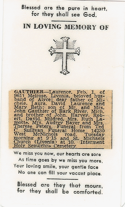 Laurence Gauthier obituary Ford Motor Livonia Obituary for Laurence in the Ford Motor Company "Livonia Automatic Transmission News". |